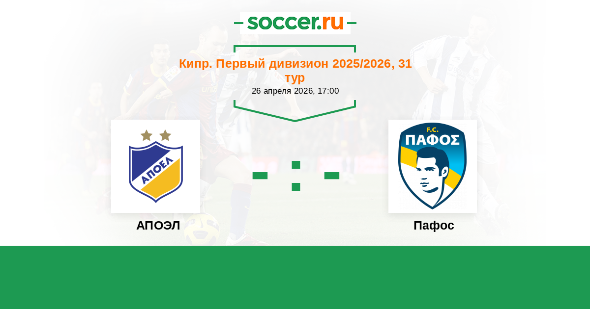 Кипр. Первый Дивизион 10.04.2022 АПОЭЛ Логотип футбольный клуб АПОЭЛ (Никосия) 2:1 Логотип футбольный клуб Пафос Пафос
