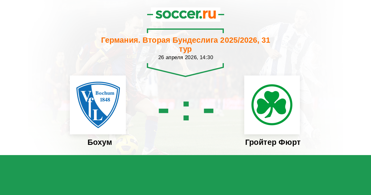 Германия. Бундеслига 2 29.11.2025 Гройтер Фюрт Логотип футбольный клуб Гройтер Фюрт 0:3 Логотип футбольный клуб Бохум Бохум