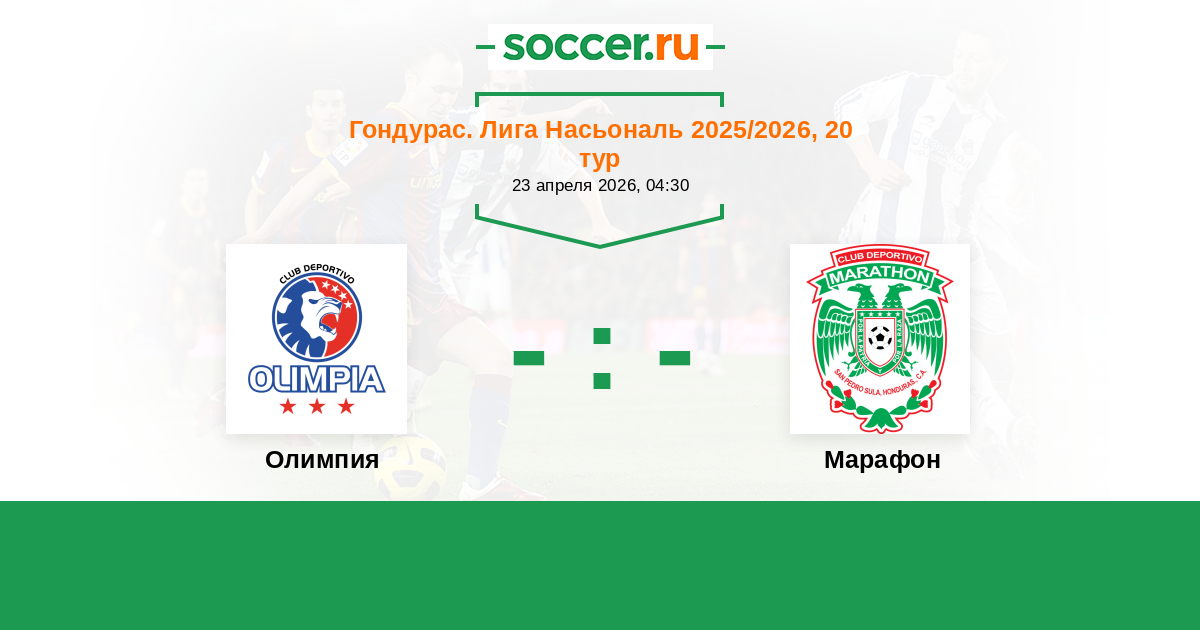 Гондурас. Лига Насьональ 02.03.2026 Марафон Логотип футбольный клуб Марафон (Сан-Педро-Сула) 2:1 Логотип футбольный клуб Олимпия (Тегусигальпа) Олимпия