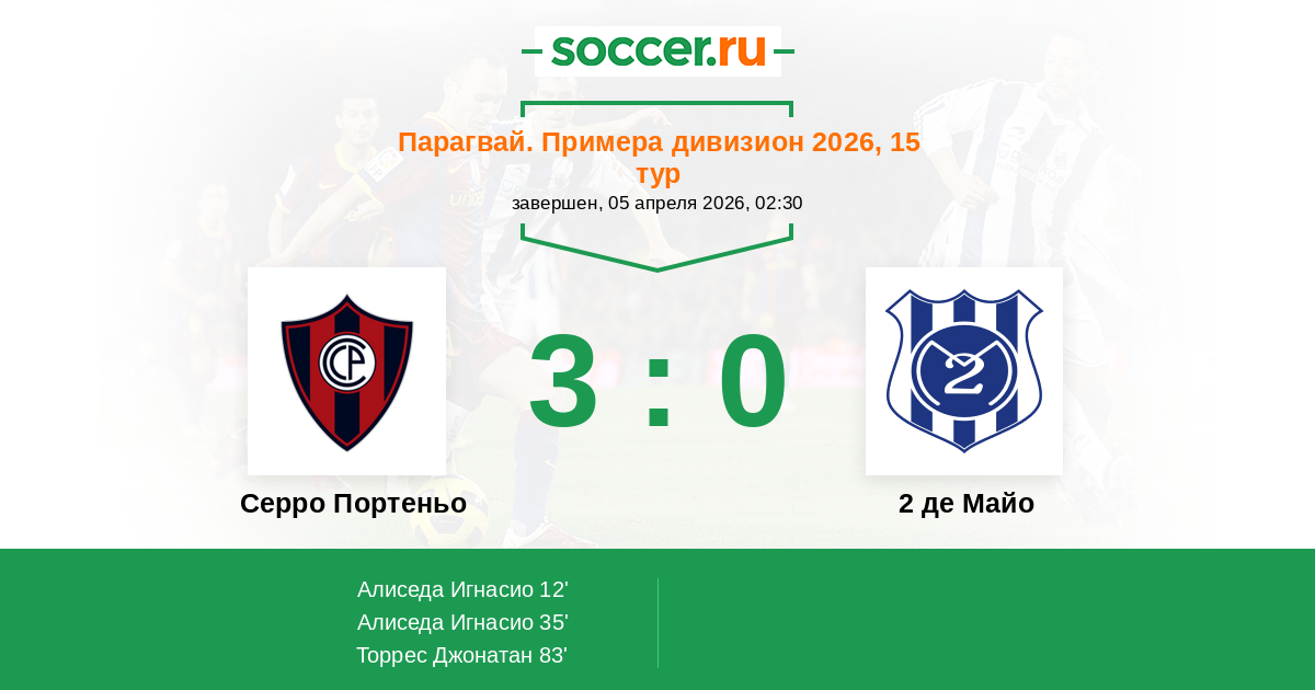 Протокол матча Серро Портеньо против 2 де Майо