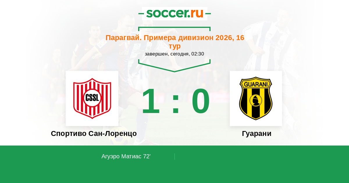 Протокол матча Спортиво Сан-Лоренцо против Гуарани