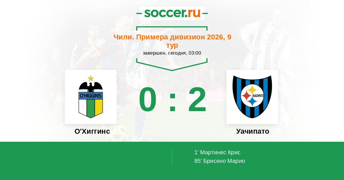 Протокол матча О'Хиггинс против Уачипато