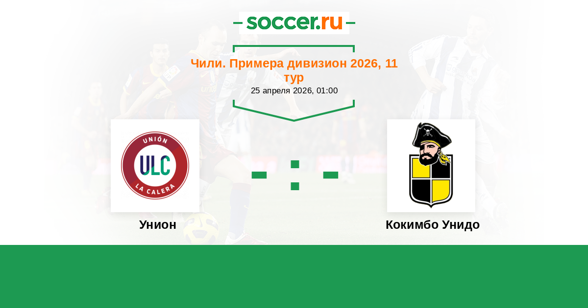 Чили. Примера дивизион 02.11.2025 Кокимбо Унидо Логотип футбольный клуб Кокимбо Унидо 2:0 Логотип футбольный клуб Унион (Ла Калера) Унион