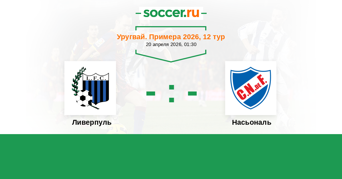 Уругвай. Примера A 26.03.2025 Ливерпуль Логотип футбольный клуб Ливерпуль (Монтевидео) 2:2 Логотип футбольный клуб Насьональ (Монтевидео) Насьональ