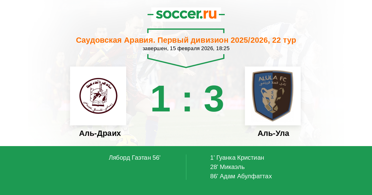Протокол матча Аль-Драих против Аль-Ула