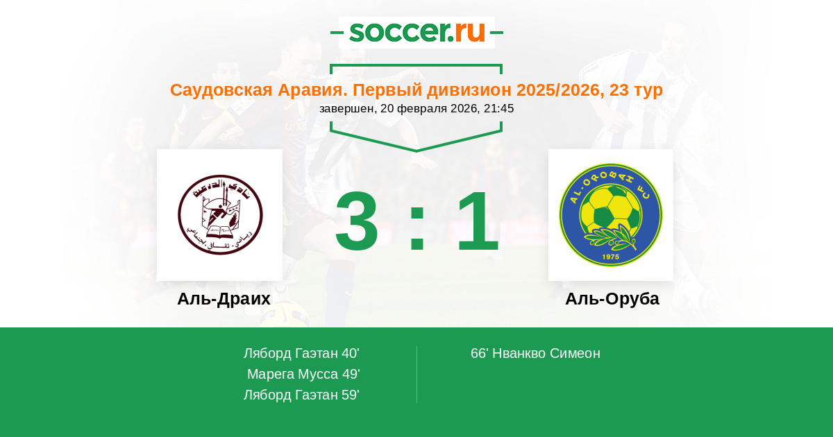 59' (3:0) Ляборд Гаэтан (9) (Аль-Фарадж Абдулазиз (2))