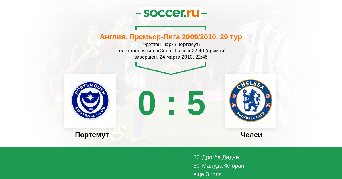 Гол90' (0:5) Лэмпард Фрэнк (8) (Дрогба Дидье)