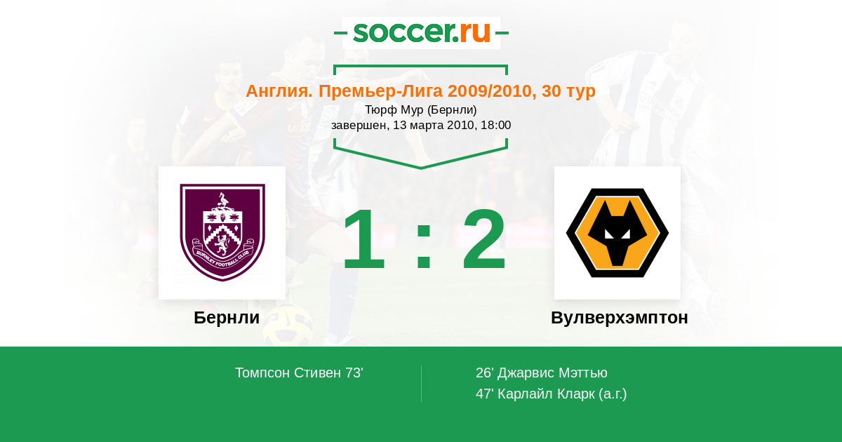 Протокол матча Бернли против Вулверхэмптон