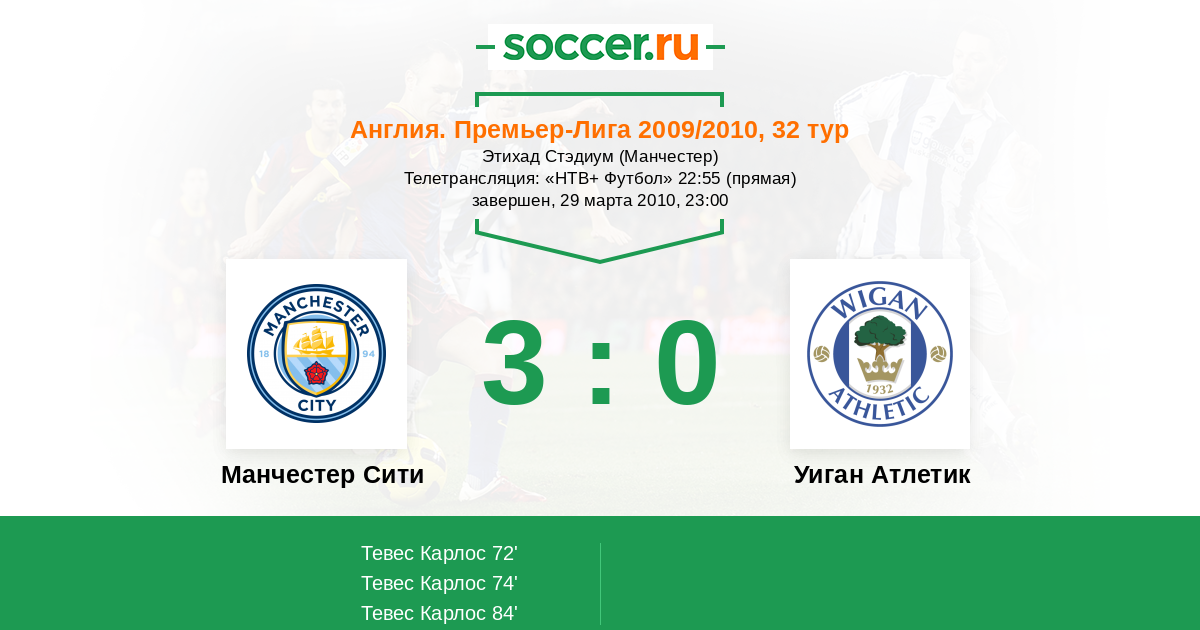 Протокол матча Манчестер Сити против Уиган Атлетик