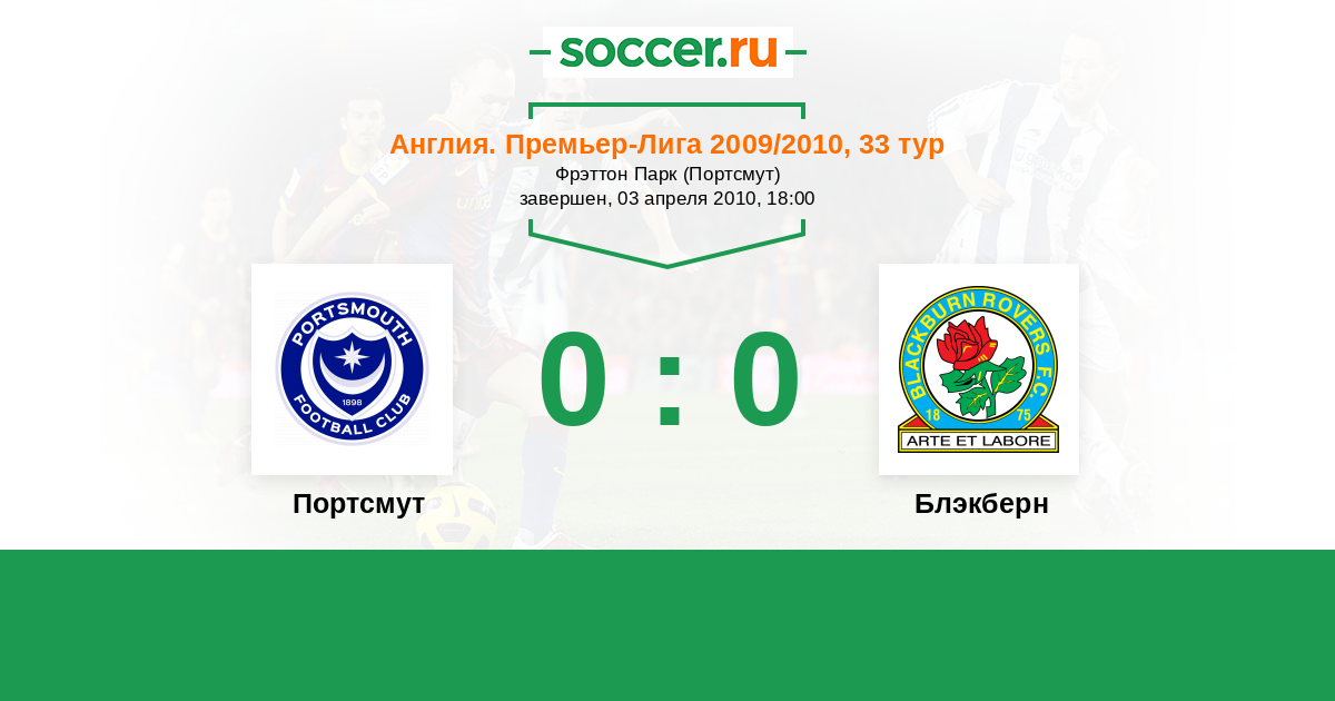 Протокол матча Портсмут против Блэкберн