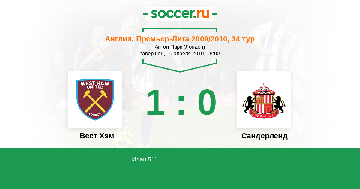 Протокол матча Вест Хэм против Сандерленд