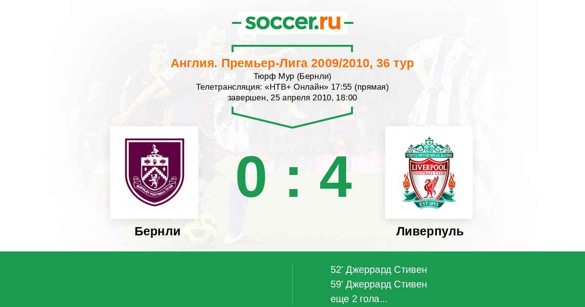 Протокол матча Бернли против Ливерпуль