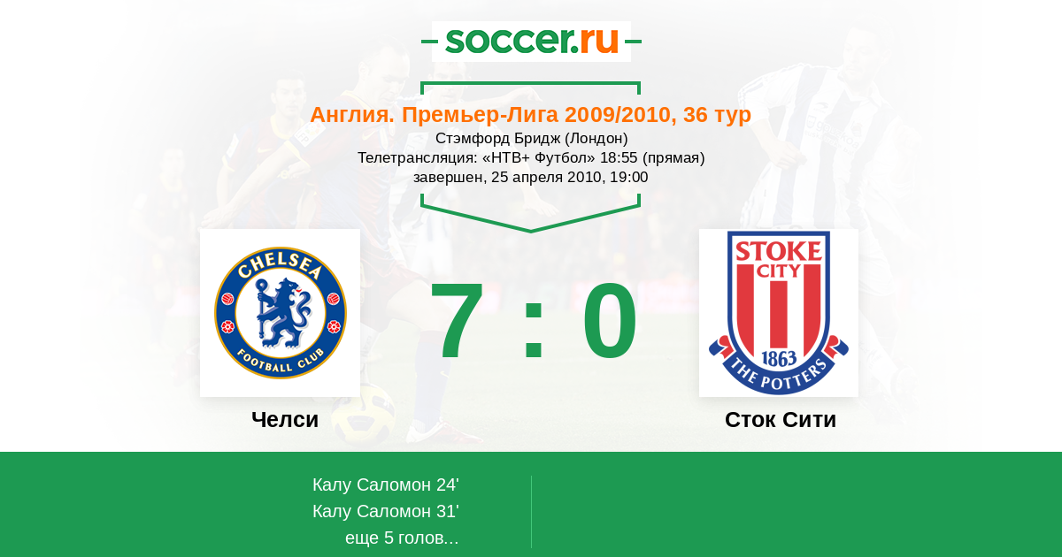 Протокол матча Челси против Сток Сити