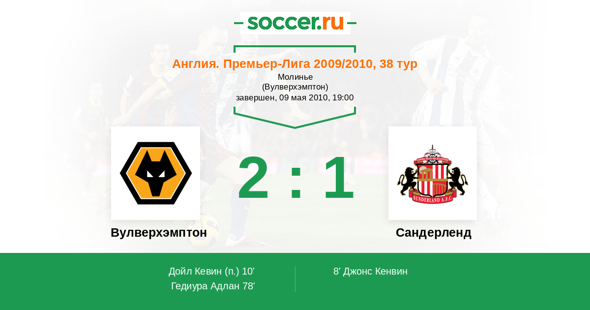 Протокол матча Вулверхэмптон против Сандерленд