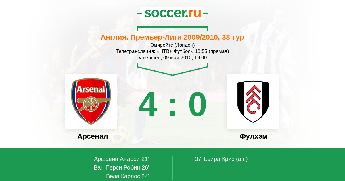 Протокол матча Арсенал против Фулхэм