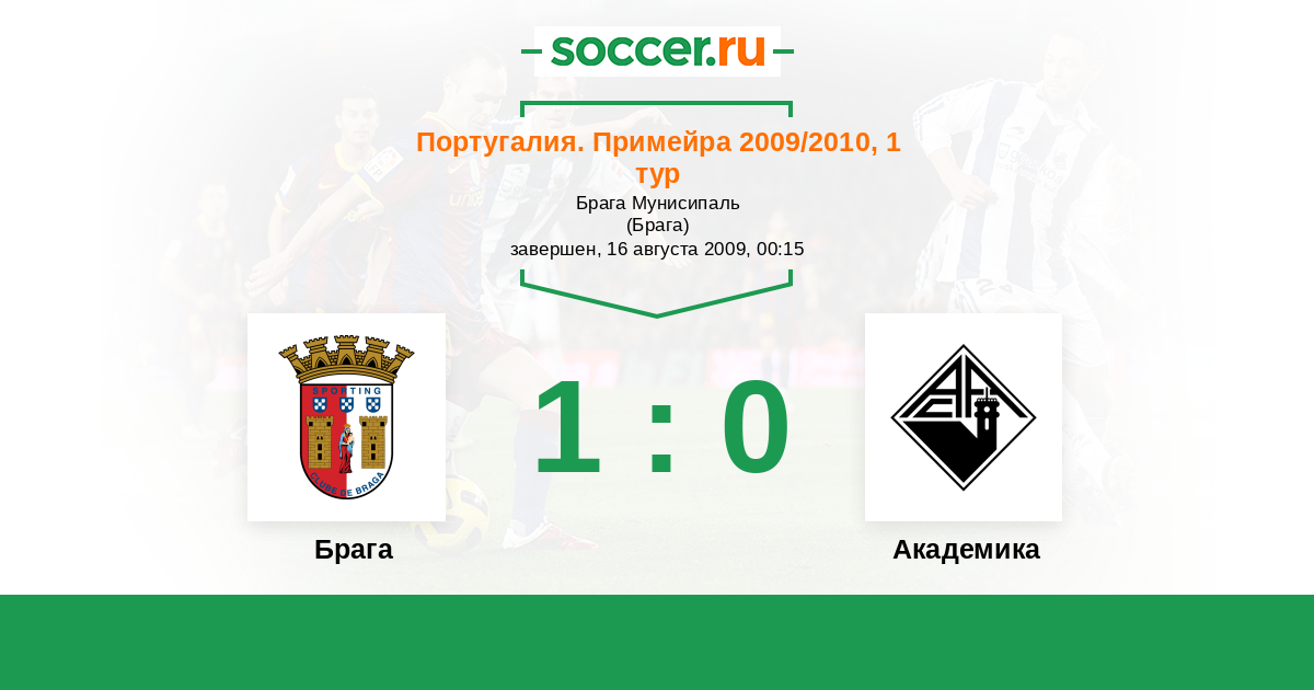 История матча Брага против Академика