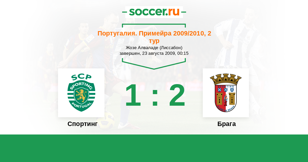 Португалия. Примейра 29.01.2010 Брага Логотип футбольный клуб Брага 1:0 Логотип футбольный клуб Спортинг (Лиссабон) Спортинг