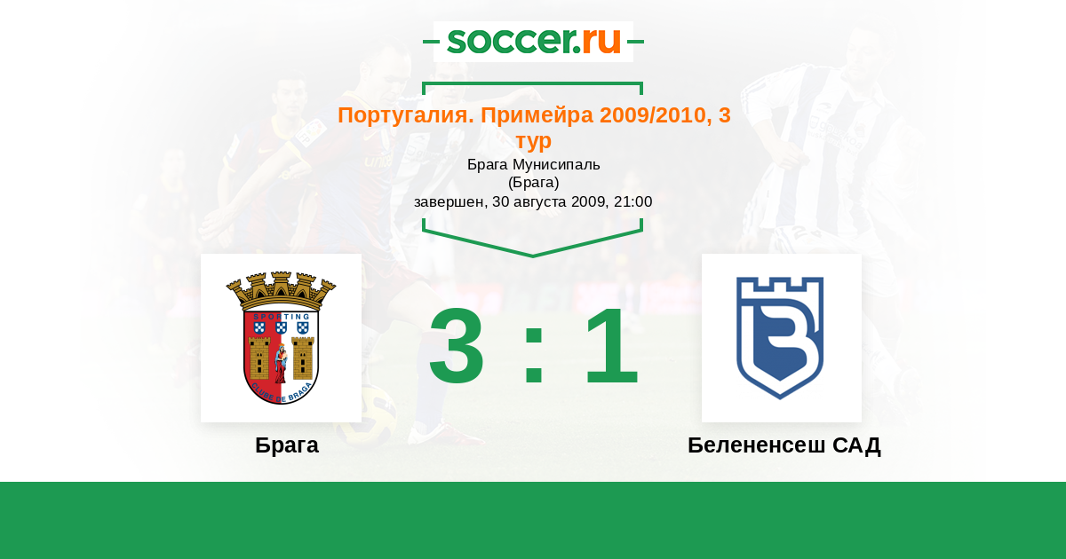 Португалия. Примейра 08.02.2010 Белененсеш САД Логотип футбольный клуб Белененсеш САД (Лиссабон) 1:3 Логотип футбольный клуб Брага Брага