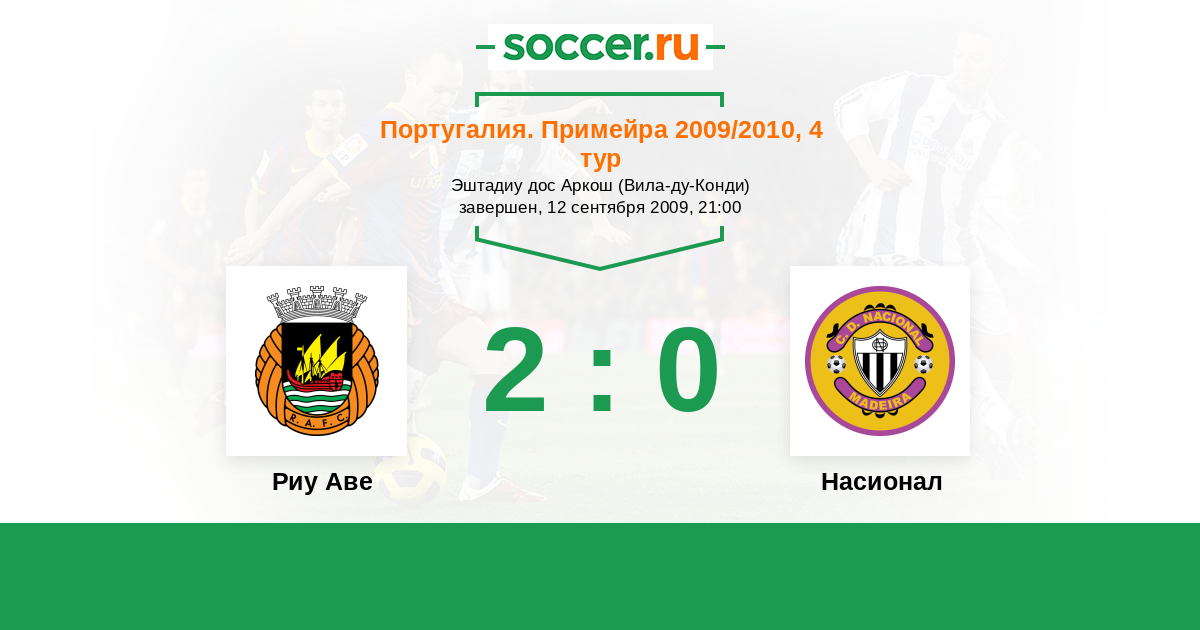 Португалия. Примейра 06.04.2009 Риу Аве Логотип футбольный клуб Риу Аве (Вила-ду-Конди) 0:3 Логотип футбольный клуб Насионал (Фуншал) Насионал