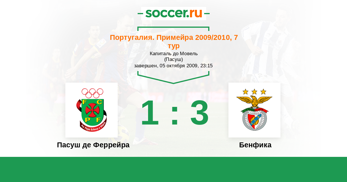 Португалия. Примейра 22.09.2008 Пасуш де Феррейра Логотип футбольный клуб Пасуш де Феррейра 3:4 Логотип футбольный клуб Бенфика (Лиссабон) Бенфика