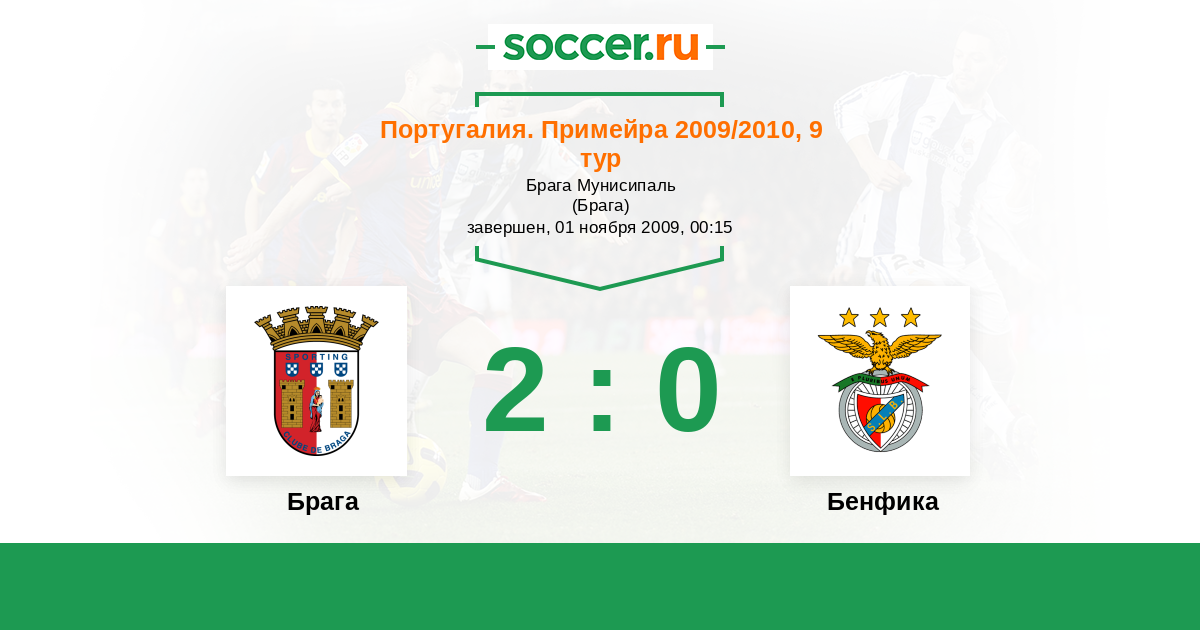 Португалия. Примейра 06.11.2011 Брага Логотип футбольный клуб Брага 1:1 Логотип футбольный клуб Бенфика (Лиссабон) Бенфика