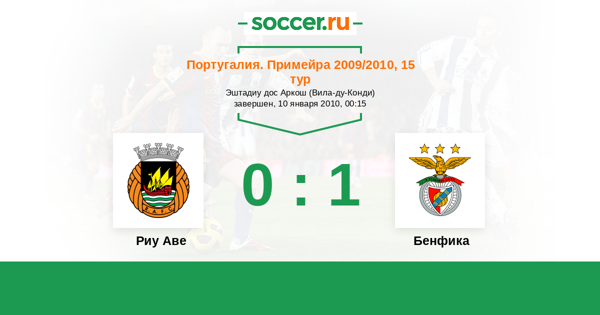 Португалия. Примейра 09.05.2010 Бенфика Логотип футбольный клуб Бенфика (Лиссабон) 2:1 Логотип футбольный клуб Риу Аве (Вила-ду-Конди) Риу Аве