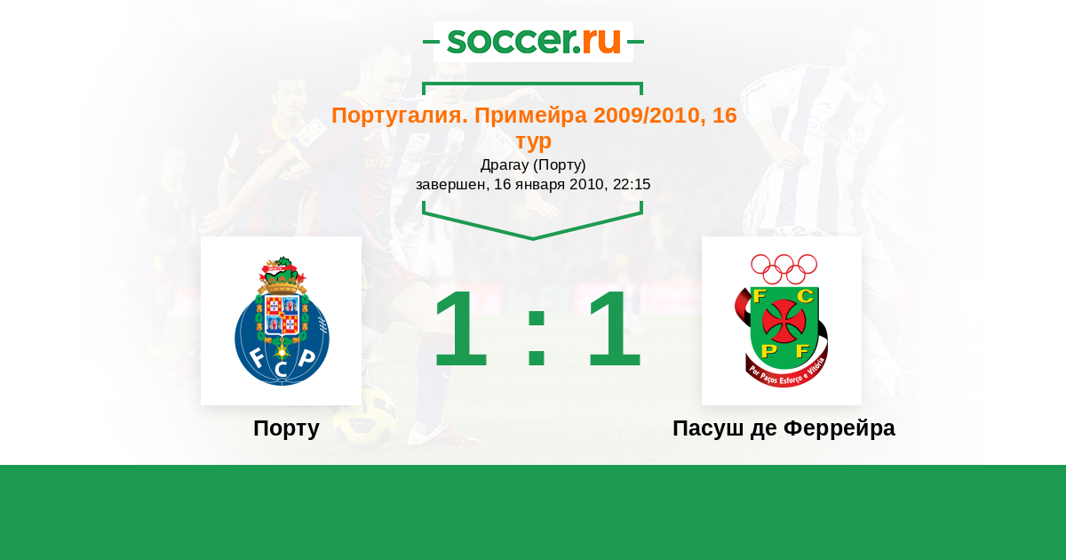 Португалия. Примейра 16.08.2009 Пасуш де Феррейра Логотип футбольный клуб Пасуш де Феррейра 1:1 Логотип футбольный клуб Порту Порту