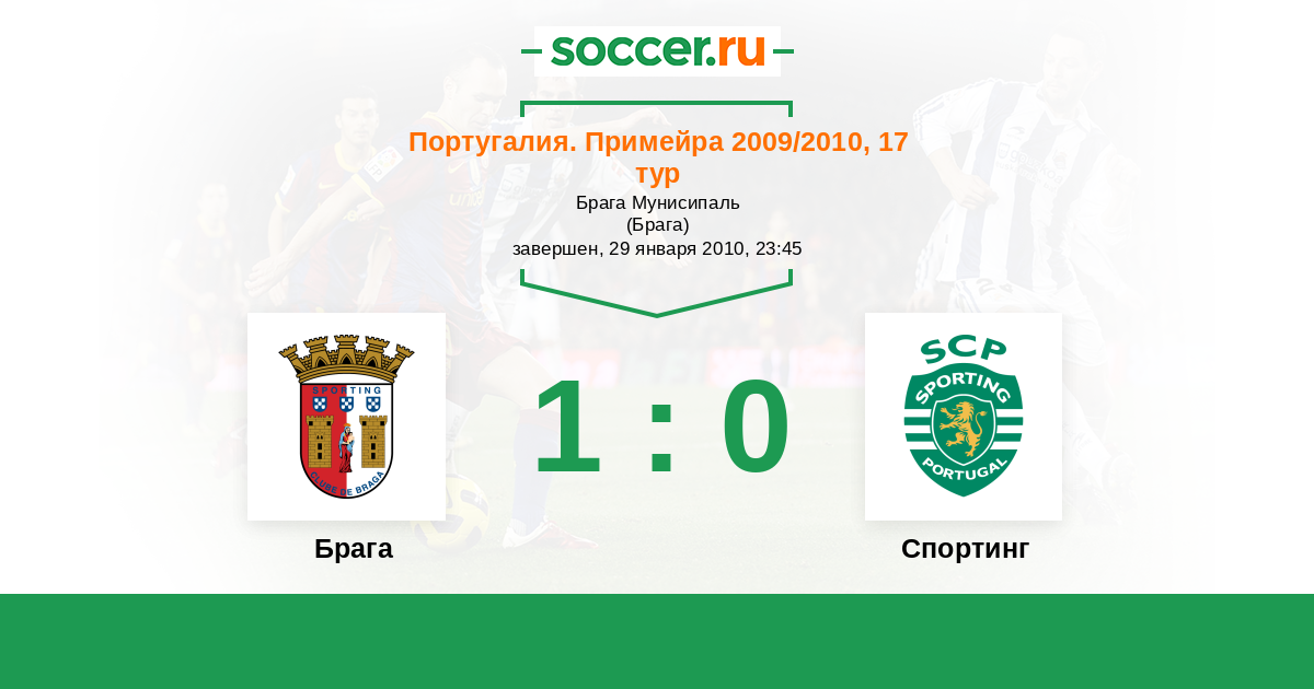 Португалия. Примейра 09.01.2011 Спортинг Логотип футбольный клуб Спортинг (Лиссабон) 2:1 Логотип футбольный клуб Брага Брага