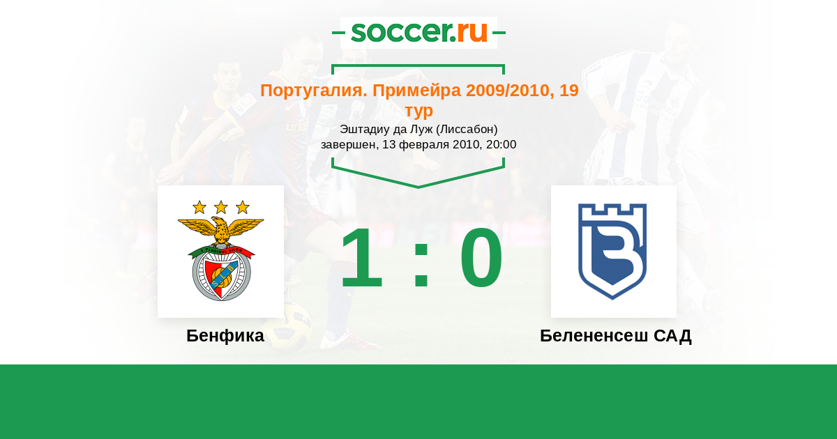 Португалия. Примейра 13.09.2009 Белененсеш САД Логотип футбольный клуб Белененсеш САД (Лиссабон) 0:4 Логотип футбольный клуб Бенфика (Лиссабон) Бенфика