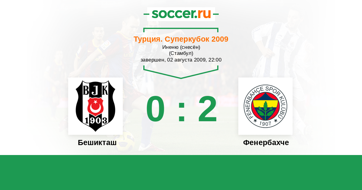 Турция. Суперлига 03.05.2009 Бешикташ Логотип футбольный клуб Бешикташ (Стамбул) 1:2 Логотип футбольный клуб Фенербахче (Стамбул) Фенербахче