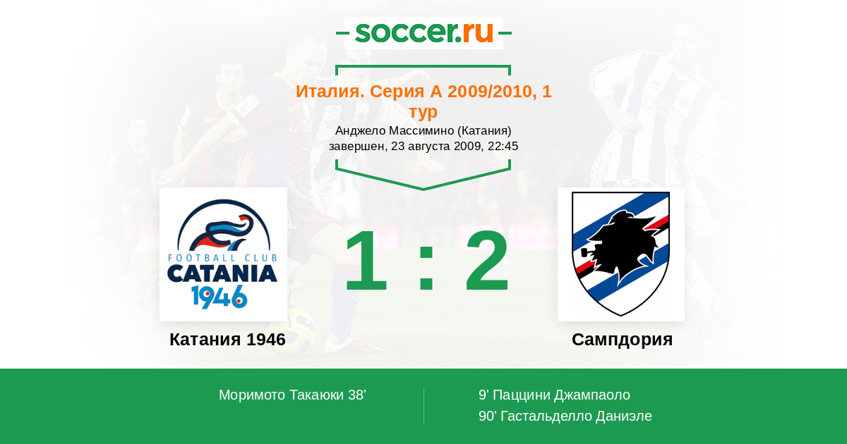 9' (0:1) Паццини Джампаоло (10) (Кассано Антонио (99))