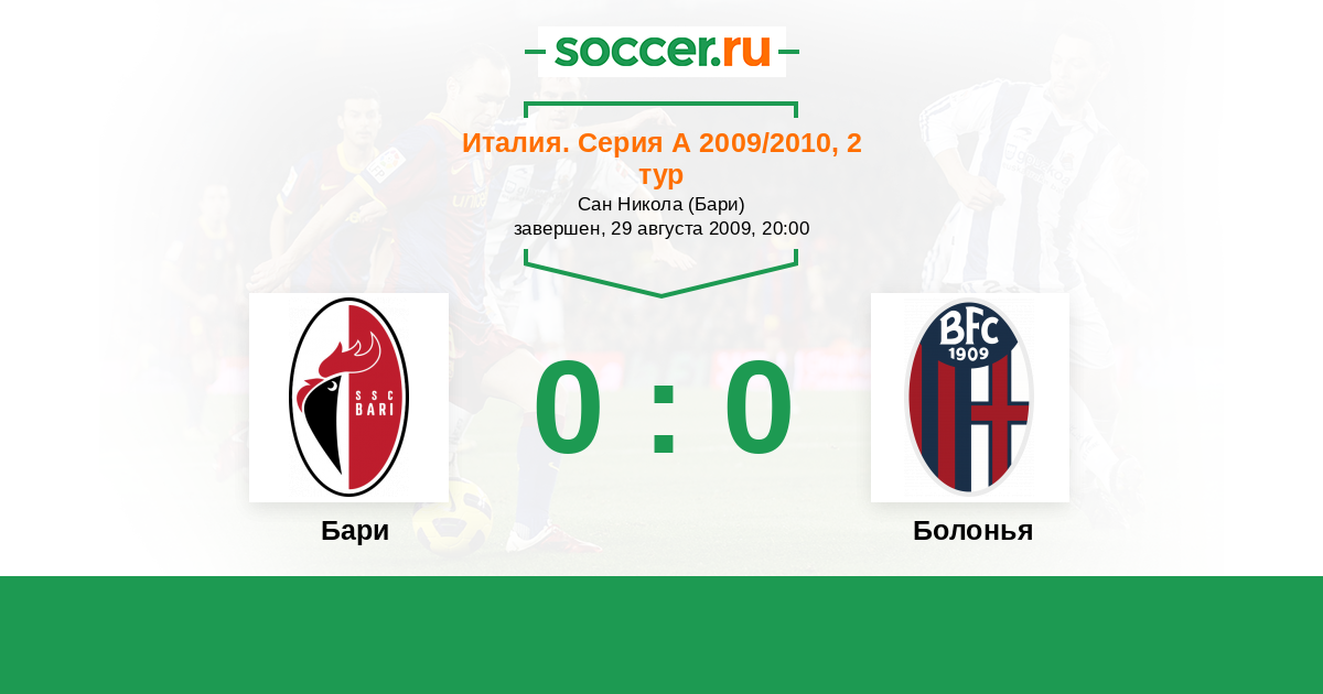 Протокол матча Бари против Болонья