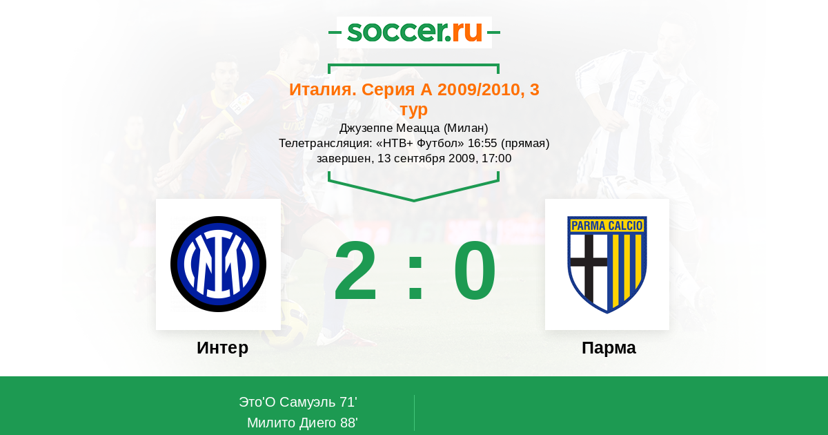 Протокол матча Интер против Парма