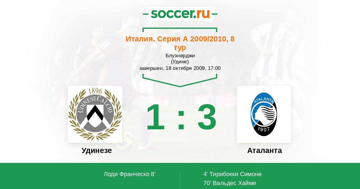 Протокол матча Удинезе против Аталанта