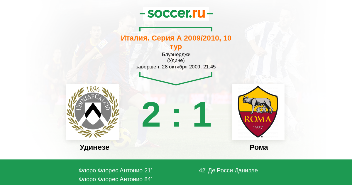 21' (1:0) Флоро Флорес Антонио (83) (Д'Агостино Гаэтано (21))