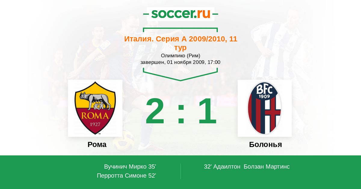 Протокол матча Рома против Болонья