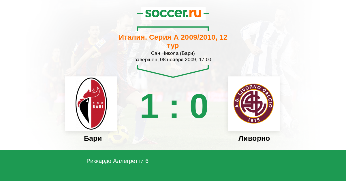 6' (1:0) Риккардо Аллегретти (30)
