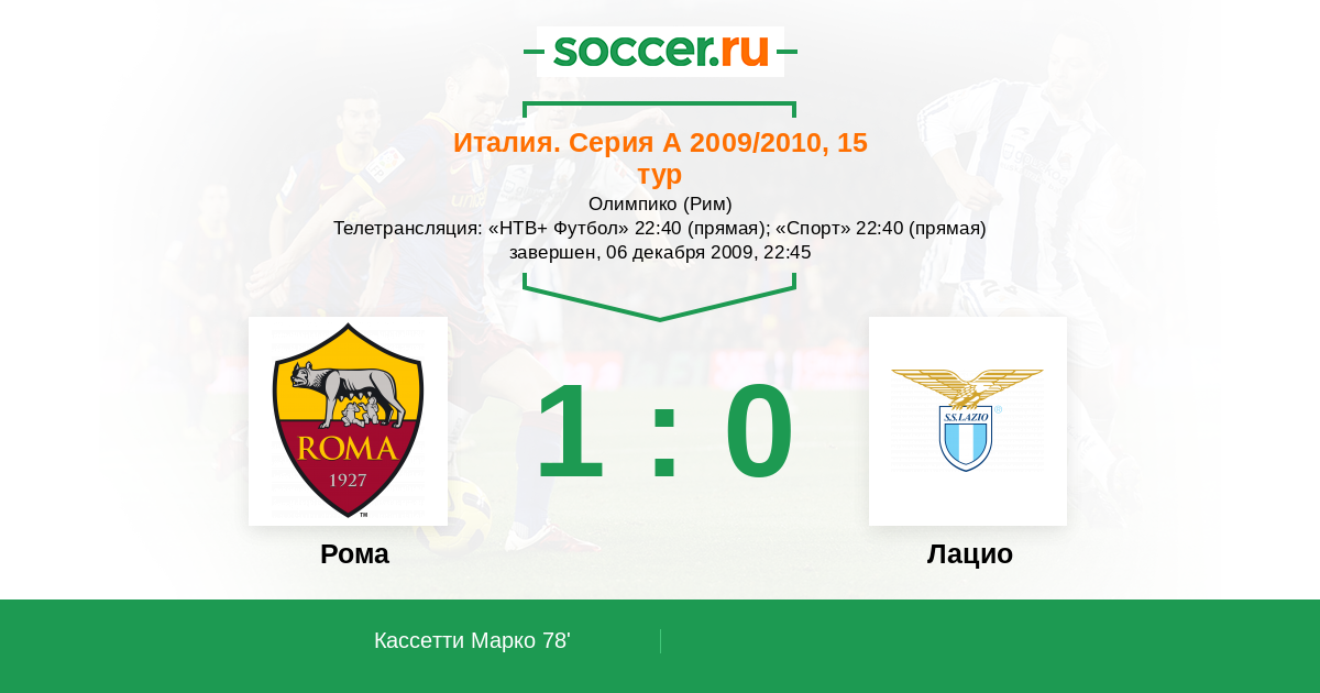 Протокол матча Рома против Лацио
