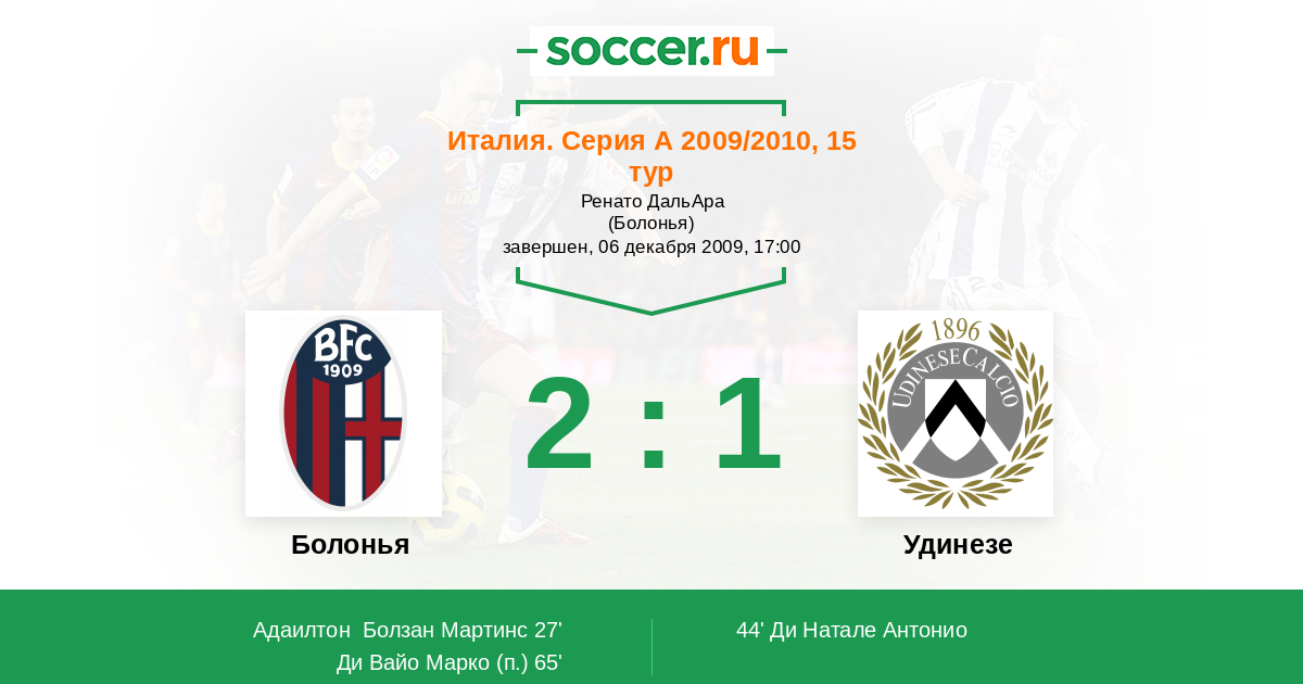 Протокол матча Болонья против Удинезе
