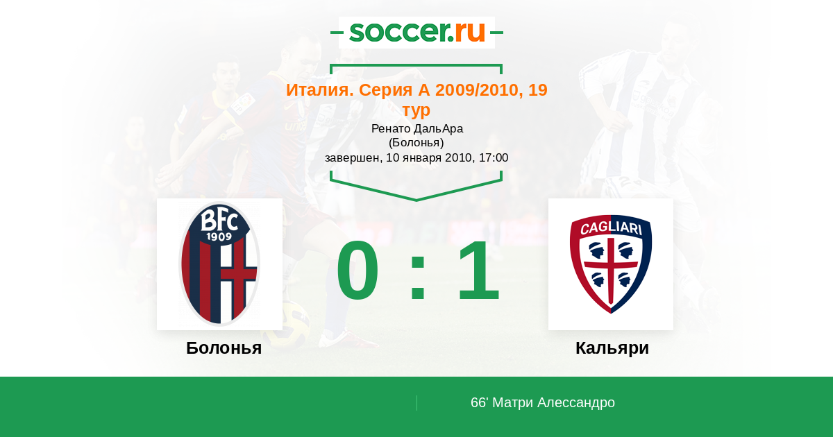 Протокол матча Болонья против Кальяри