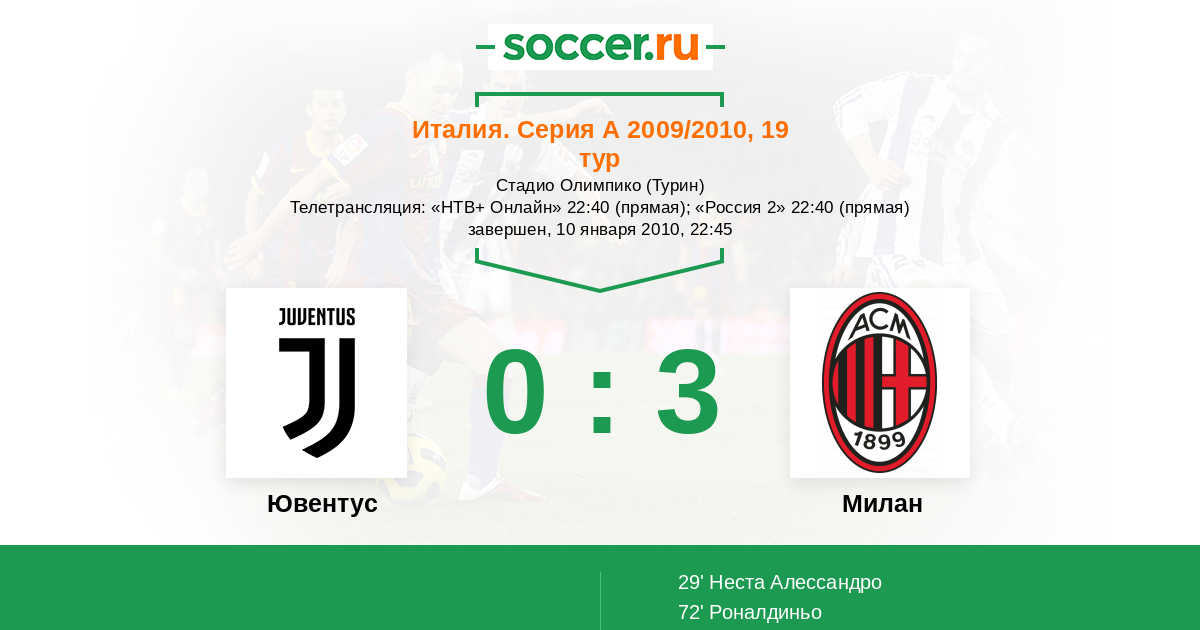 Протокол матча Ювентус против Милан