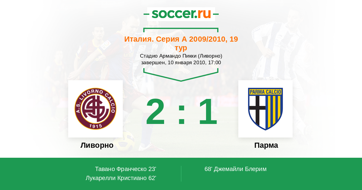 Протокол матча Ливорно против Парма