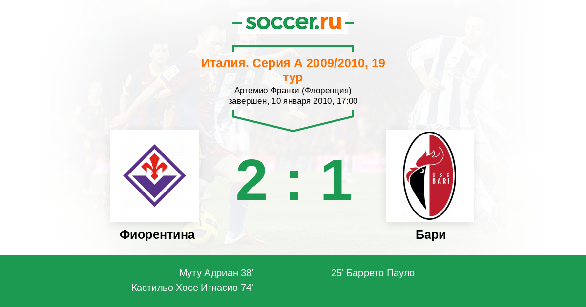 Протокол матча Фиорентина против Бари