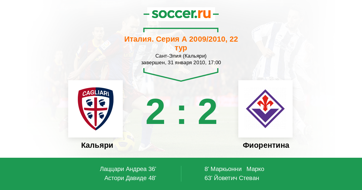 Протокол матча Кальяри против Фиорентина