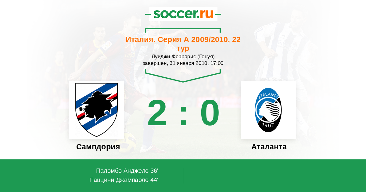 Протокол матча Сампдория против Аталанта