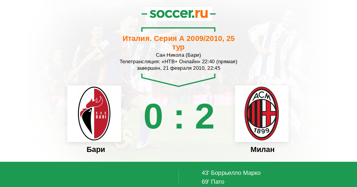 Протокол матча Бари против Милан