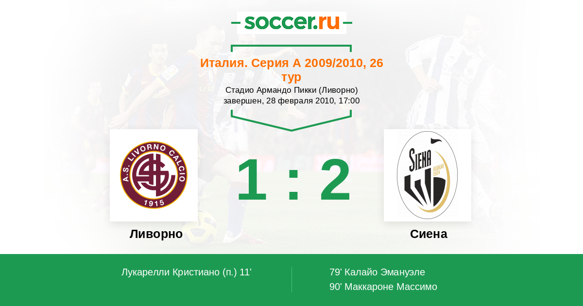 Протокол матча Ливорно против Сиена