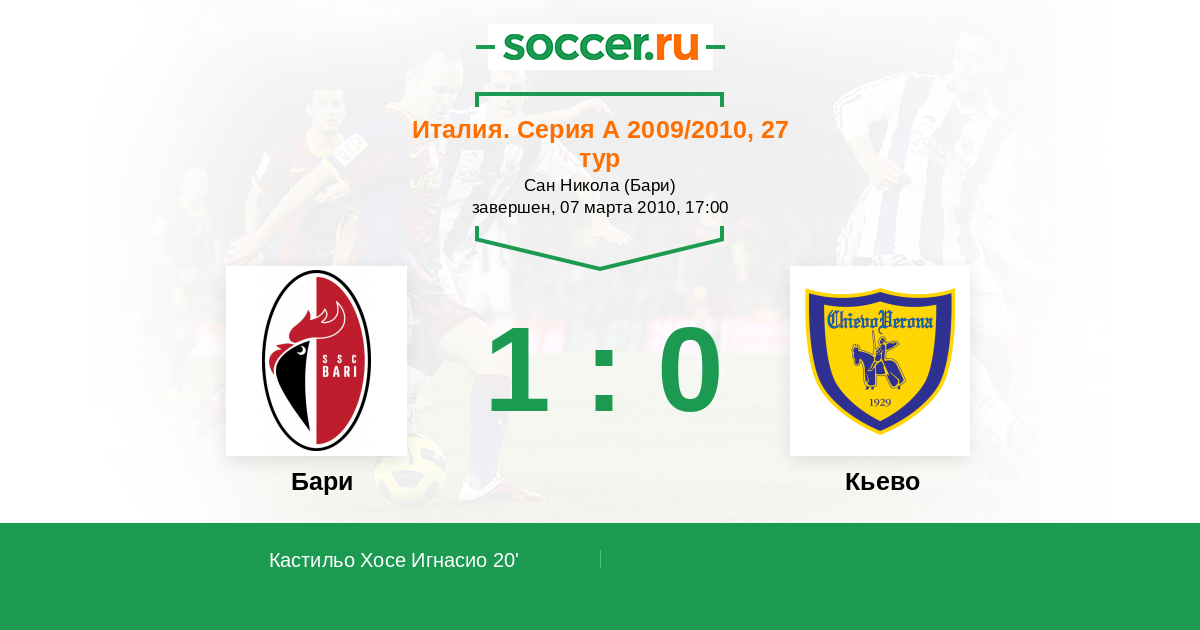 20' (1:0) Кастильо Хосе Игнасио (6) (Риккардо Аллегретти (30))