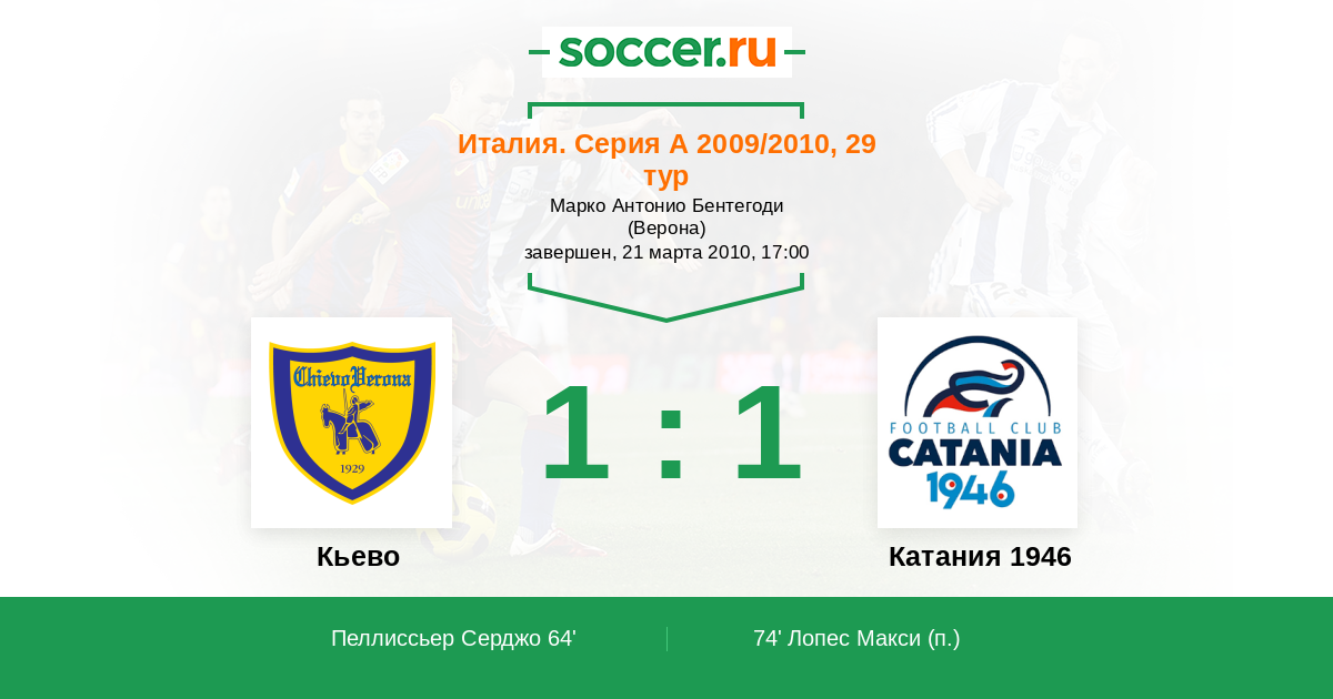 Протокол матча Кьево против Катания 1946