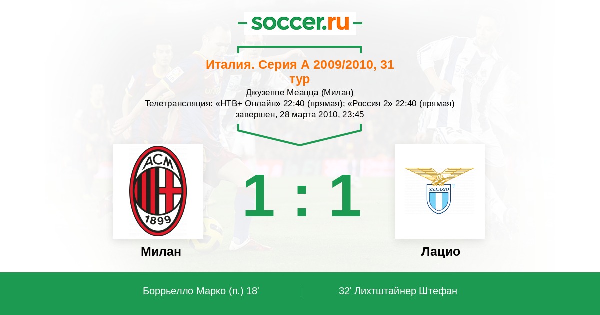 Протокол матча Милан против Лацио
